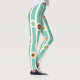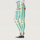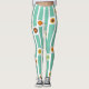 These leggings have a 1970s retro design of blue stripes interrupted by circles in brown, orange and green.