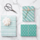 Stripes and dots sea foam green summer wrapping paper sheet
