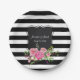Stylish wedding paper plates, with a pretty colourful peach, pink, robins egg blue, and green floral spray pattern. A robin's egg blue band, across the middle of the plate, has white custom text ready to personalise. Matching paper napkins and other wedding products available.