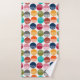 This towel set has a mid-century modern design of striped semicircles and solid semicircles put together on a field of white.