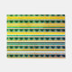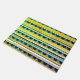 Blue and yellow stripes and triangles.