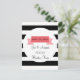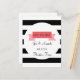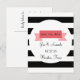 This "save the date" postcard features a banner design on a black and white striped background. Customise with your names, details and a special greeting on the back.