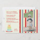 This 5x7 boys birthday party invite has red, green, blue, and yellow bold coloured stripes. There is the number 1 with a place for you to add your own photograph. To the left, there is a cake with you easily customisable party information. What a great invite for your child's first birthday! Copyrights © Sanqunetti Design