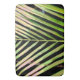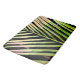 The striped tropical pattern on this large Bath Mat was made from an original photograph by ZoeSPEAK of a royal palm frond in the sunshine, against a dark green background of pine trees. The contrast is strong between the dark background and the yellow green leaves with their salmon pink highlights, making this abstract design from nature look almost like an animal print.