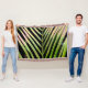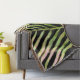 The diagonally striped, tropical pattern on this Throw Blanket was made from an original photograph by ZoeSPEAK of a royal palm frond in the sunshine, against a dark green background of pine trees. The contrast is strong between the dark background and the yellow green leaves with their salmon pink highlights, making this abstract design from nature look almost like an animal print.