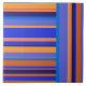 A pattern of vertical and horizontal stripes in oranges and blues.