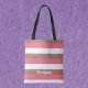 Stripes Mocha Brown Pink White Personalise Tote Bag
