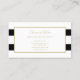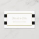 A modern black and white wide horizontal stripes boutique business card with gold script against a white background. Perfect for the hair and beauty industry. Personalise by adding the name of the salon owner or stylist.