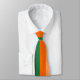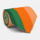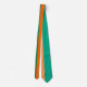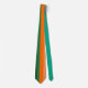 This tie has a Bauhaus design of stripes in shades of orange and teal.