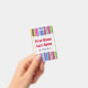 This badge design features an eyecatching pattern of stripes (or lines) of various colours. It also features a customisable name in red coloured text within a light coloured area. There is also a customisable message under the name that could show information such as a job title, or a profession, or a business/company name. [~Z0000176]