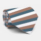 Do you like striped ties? This tie features a pattern of mocha brown, white and teal stripes.