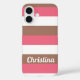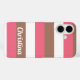 Do you like cell phone cases that you can personalise? This phone case has a pattern of pink, mocha brown and white stripes. The text can be changed and customised to fit your needs!