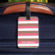Are you looking for a cute luggage tag that you can personalise? This luggage tag has a horizontal stripe pattern in pink, brown and white. The name can be changed and personalised to fit your needs!