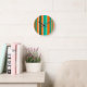 This clock has a Bauhaus design of stripes in shades of orange and teal.