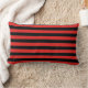 This throw pillow is shown in a cute black and red stripes print.