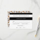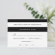 Modern and chic RSVP card with broad stripes in black and white, and a back printed with hand-painted leopard spots.