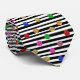 This unique necktie features a vibrant design of stripes interwoven with eye-catching colourful circles. It's a stylish accessory that adds a pop of personality to any outfit, perfect for making a statement at any occasion.