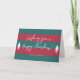 A modern Christmas card with imperfect thick stripes in teal and crimson overlaid with the phrase "wishing you a Happy Christmas!" in white hand written font and two white hand drawn trees. This card can be personalized on the front and inside of the card.