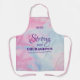 Stylish CHRISTIAN MONOGRAM APRON with inspirational message that reads STRONG AND COURAGEOUS IS THE WOMAN WHO FEARS THE LORD, based on Joshua 1:9. Purple typography against a cloudy pink and blue background. At the top there is a CUSTOMIZABLE MONOGRAM, which you can replace with your own initials. Ideal gift for Christian women everywhere, for birthdays, Mother's Day, Christmas and all year round. Part of the FEARLESS Collection by Berean Designs. Matching items available.