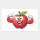 Fun cartoon apple character showing off strong muscles with flexed arms, a big smile, and energetic expression. This bold and colorful illustration represents strength, health, and fitness in a playful style. Perfect for kids designs, healthy food branding, fitness campaigns, gym posters, nutrition apps, stickers, social media graphics, and digital products. Ideal for themes of power, wellness, fruit mascots, motivation, cartoons, and positive energy.