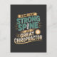 This motivational chiropractic design features the quote “Behind Every Strong Spine Is a Great Chiropractor.” A bold retro style celebrates chiropractic care, spine health, and appreciation for chiropractors and students in the profession.