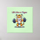 A fun and energetic illustration of a tiger lifting weights, created in a simple and clean style with no backgroun