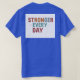 The t-shirt design features a bold, minimalist design with the phrase "Stronger Every Day" printed in a large, sans-serif font. The text is centred on the shirt, with a subtle blur effect creating a dynamic background. The overall aesthetic is clean and modern, with a motivational tone.