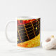 A great mug featuring a golden background with a giant size fret board and a black electric guitar accenting this design. Perfect for a guitar player or music teacher! Customise as desired.