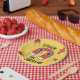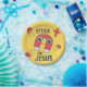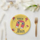 Celebrate faith in a fun and joyful way with this bright and cheerful “Stuck On Jesus” party plate! Featuring a happy cartoon magnet surrounded by tiny magnets, lightning bolts, and a bold red cross, this playful artwork is set on a soft, peachy background with subtle marbling. Perfect for Christian children's parties, salvation celebrations, Sunday school events, or Vacation Bible School decorations.