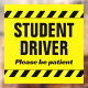 "Please be patient". Warn other drivers that there is a new driver on the road! Student Driver window cling decal for Drivers Ed, Driver's Education road class or parents teaching thier 16 year old how to drive. Yellow hazard warning stripes with bold yellow and black text. This cling is applied from INSIDE the car UNLESS you change the "adhesive" side above.