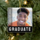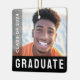 Modern, black or custom colour graduation photo ornament with your name, year, school and photo. You can change background colour, fonts and font colours, move and resize elements with the design tool.