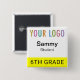 Our square student name button is easily personalizable with your school logo, student name, or other custom text. It attaches with a safety pin back. This affordable name tag is ideal for students (age 10 and up) on field trips, in classrooms, and other situations where quick identification of students is necessary. Designed in yellow and other colors (all colors are customizable). Our square buttons are 2 inch x 2 inch. Made in USA. No minimum order quantity and no setup fee.