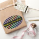 This sticker design features a pattern of lines (or stripes) coloured various pastel colours, with black lines in between them. It also features the message "Student of the Week!" in yellow text within a dark coloured band. It could perhaps be used by a teacher, educator or tutor to acknowledge and praise a student who has had a very good week. [~Z0000052]