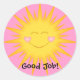 Student Stickers / Great Work. Happy Smiling Sun with heart cheeks. Customise text to your specifications. "Good Job", "Super Student", "Well Done", "Star Student, Happy Birthday, you decide.
