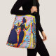 It's very roomy. The fabric is soft and flexible, and the strap is wide and adjustable to fit across the body. The printing is true to the photo.