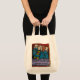 The printing came out very well, better than I had anticipated. The natural color fabric is sturdy with strong seams and comfortable handles. This tote fits easily over my shoulder. As it is filled, the bottom flattens out--very cool! I would buy this product again. This grocery tote holds a lot of groceries! The image quality was very good. The colors were a little darker than I had expected. The darkness may have been due to printing on a natural color fabric rather than on white. The cat design is attractively centered on the tote. The spirit of the design is very lively, just as it appears on the Zazzle website.