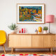 Study for Autumn Landscape with Boats (1908) by renowned Russian painter Wassily Kandinsky is a vibrant and colourful piece that offers a dynamic portrayal of nature. The painting showcases Kandinsky’s early exploration of abstraction, blending bold strokes and rich colours to depict a landscape scene with boats. The use of vivid hues suggests the energy and changing mood of autumn, capturing both the natural beauty of the season and the artist's evolving approach to modern art. This study serves as a precursor to some of Kandinsky’s later, more abstract works, reflecting his unique ability to express movement and emotion through colour and form.