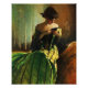 Study in Black and Green by John White Alexander (Pennsylvania 1856–1915). The idealised, impassive woman, shown as if she were a precious object was a painter favourite subject, Here, a young beauty is absorbed to pinning a bauble or blossom to the low neckline of her elegant evening gown. The skirt’s sinuous striped pattern, the curves at the knees and shoulders, and the contour of the upswept hair justify the description of Alexander as “the painter of the flowing line.” His dazzling brushwork is especially noteable in the rendering of the rich fabrics and in the otherwise plain background.