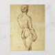 Sketch or drawing of Michelangelo's David by Raphael Sanzio, Raffaello (1483-1520) is a vintage Renaissance Era fine art portrait piece viewing the male model from behind. Raphael studied the techniques of both Leonardo da Vinci and Michelangelo and made many sketches of life models posed in the same way as Michelangelo's statue of David.