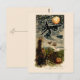 A dark sky filled with stars and a big, harvest moon is studying an interesting star formation of a witch on a broom. It’s a perfect Halloween night. The text is original to the print and reads, “Study the Stars on Hallowe’en Night.” This postcard would make a great Halloween party invitation.