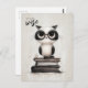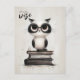 A back-to-school postcard with customisable "study wise" text with the illustration of a furry owl standing on top of a book pile.