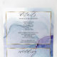 Ethereal splash of alcohol ink stains in shades of striking aqua, violet purple and pale lilac - each section highlighted with a sheer white overlay framed in gilded gold, on the front centre is your photo accented with a double gold frame and behind the sheer white overlay for an esoteric appeal a beautiful modern abstract design for an all in one wedding invitation complete with pre-addressed detachable meal choice rsvp for your guests to easily mail back - a stunning all in one wedding invitation -
