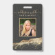 Elevate your salon's professionalism with this Stunning Black And Gold Glitter Salon ID Badge. Designed with a luxurious black background and adorned with sparkling gold glitter accents, this ID badge offers both style and functionality. The elegant script typography complements the overall design, making it perfect for upscale salons and beauty professionals. Personalise it with your name, photo, and salon details to create a cohesive and polished look for your team. Ideal for hairstylists, makeup artists, and beauty experts who want to make a lasting impression on clients.