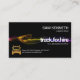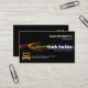 An all black cover accentuated by a colorful lightning that streaks across the card's face. Two slogan captions ride this lightning wave towards the end ; You can change both caption remarks to suit your service needs. At the top of the card are your prestigious name and job title. Southwards to the base in the lower left corner is the gold semi truck logo you can use alongside the contact details.
