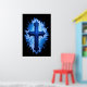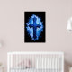 Stunning Blue Christian Cross on black | Poster