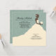 The perfect invitation to a Bridal Gown Trunk Show. A square invitation featuring a bride's silhouette wearing a stunning gown. The backdrop is a blue-green abstract swirl pattern. The card is easy to customise with your wording, font, font colour, paper shape options and choice of six paper types.