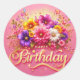 Stunning floral birthday sticker, pink background birthday sticker, personalised birthday decor, floral design sticker, custom birthday sticker.