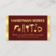 A red cover is encapsulated by gold stripes on the left and right sides of the card. It features a gold handyman tools motif near the centre.