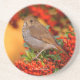 Stunning Hermit Thrush Songbird on Berry Bush Coaster