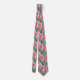 Tie with an amazing pattern representing exotic leaves in intense colours of green and pink / magenta.